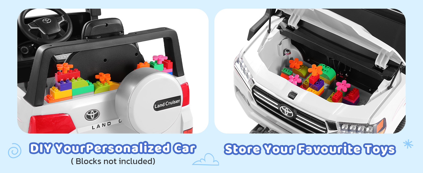 ELEMARA Toyota Ride on Car for Toddler, 12V7AH Electric Car for Kids with Remote Control,DIY Building Blocks & Storage Area,Kid Driving Car, Electric Vehicles for Kids, 3.5mph,3 Speeds,Bluetooth-White
